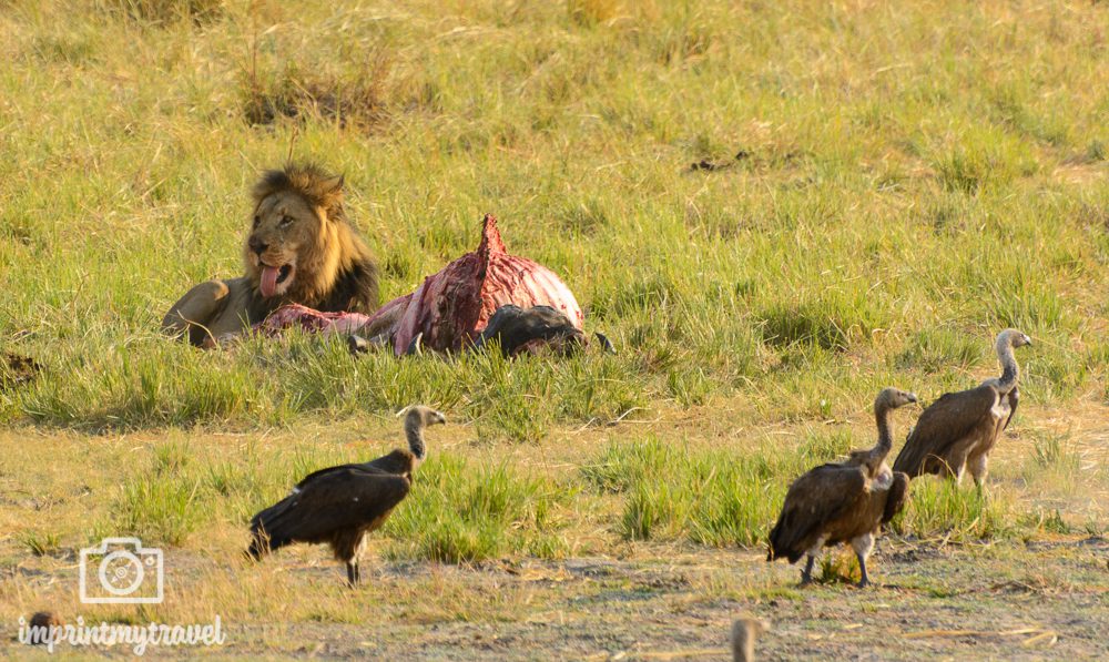 Das änderte sich allerdings wieder, als wir auf einen Löwen mit Beute trafen. So ein Anblick ist nicht alltäglich und logischerweise staute es dort wieder, da jeder diesen seltenen Moment genießen und natürlich auch fotografisch festhalten wollte.